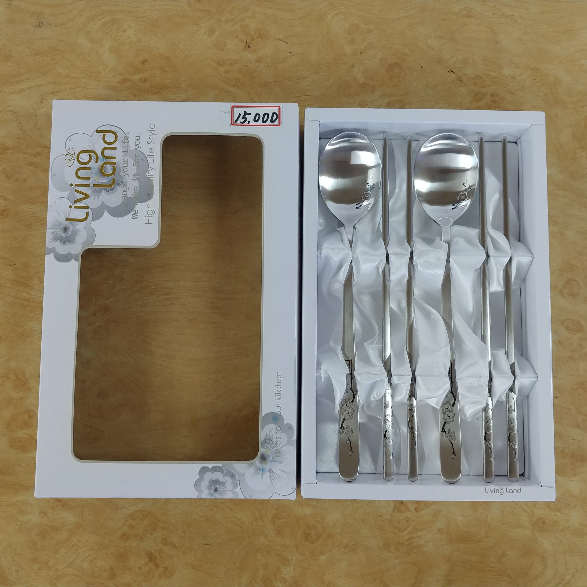 Living Land White Stainless Spoon set (for 2 person), Cherry brossoms